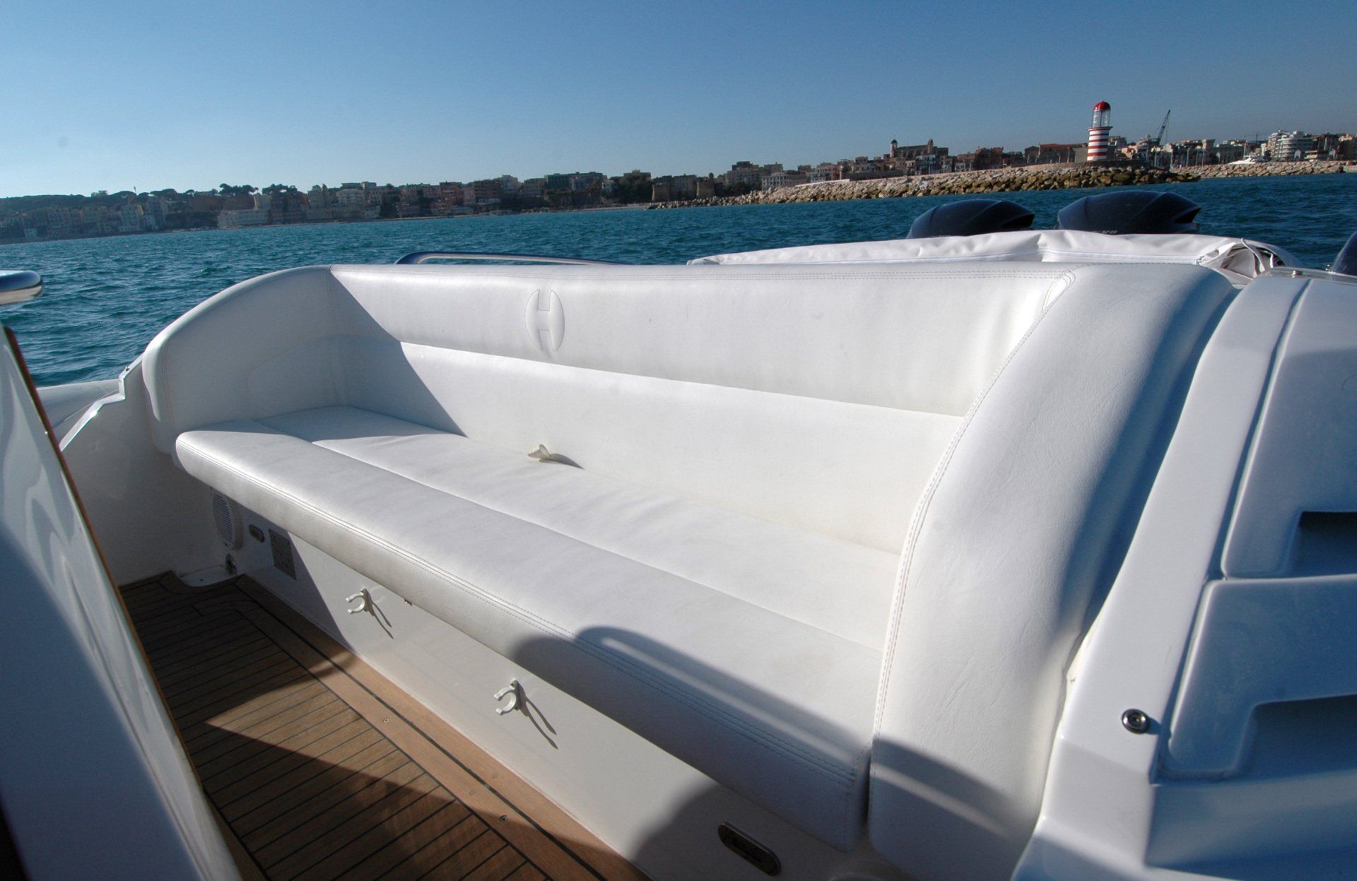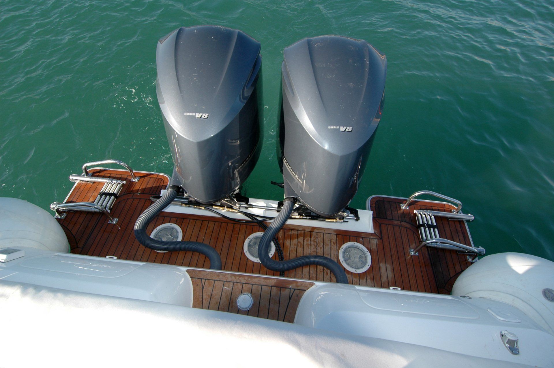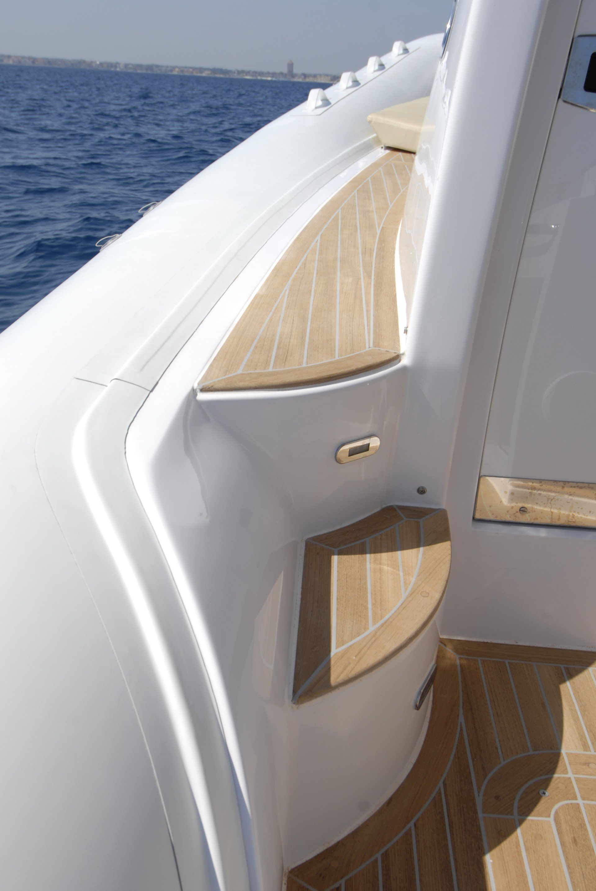 A prua, l'ampio prendisole è il posto perfetto per vivere il mare in pieno relax. La consolle di guida è ampia e permette al pilota e co-pilota di godersi la traversata al massimo delle prestazioni di questo gommone.