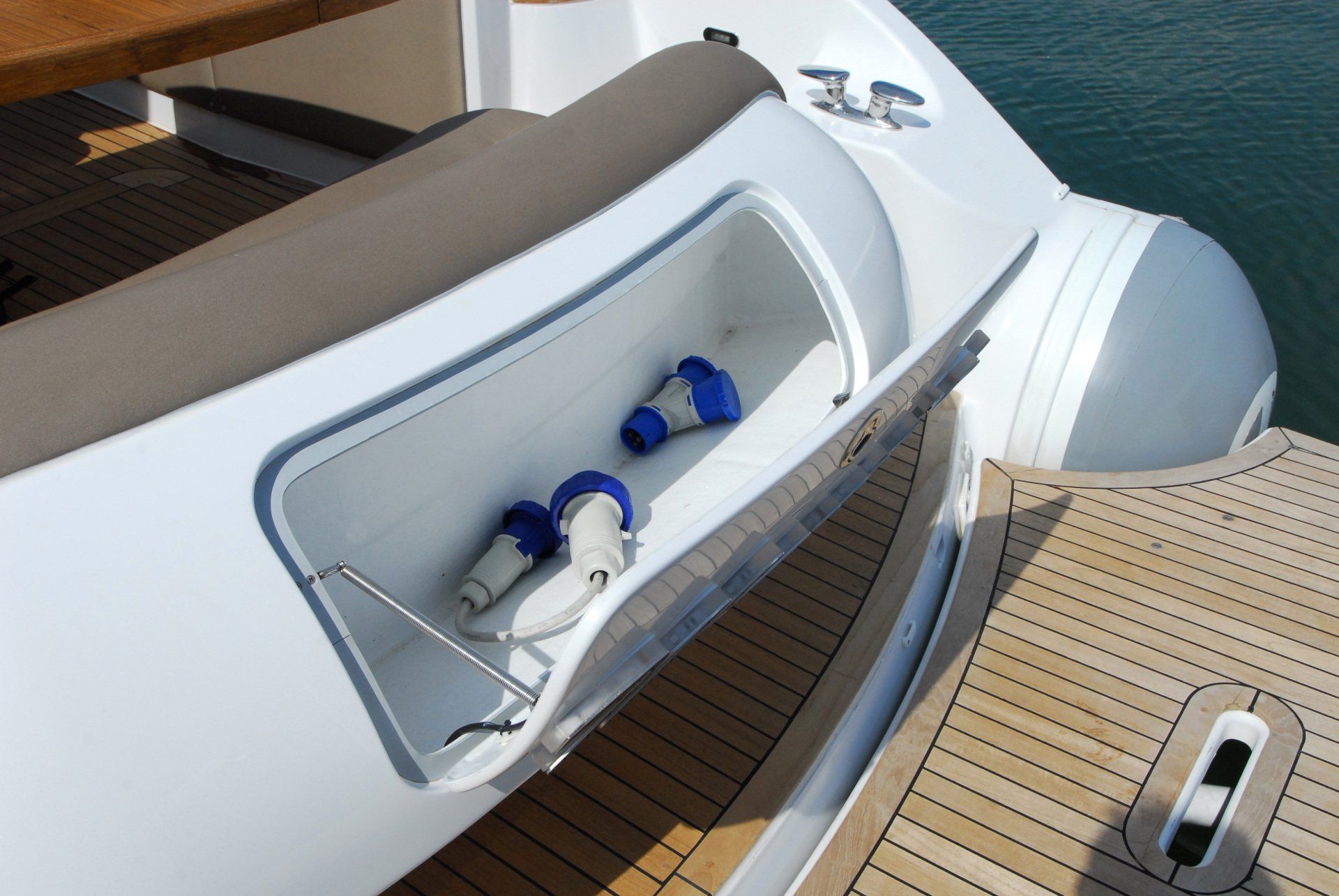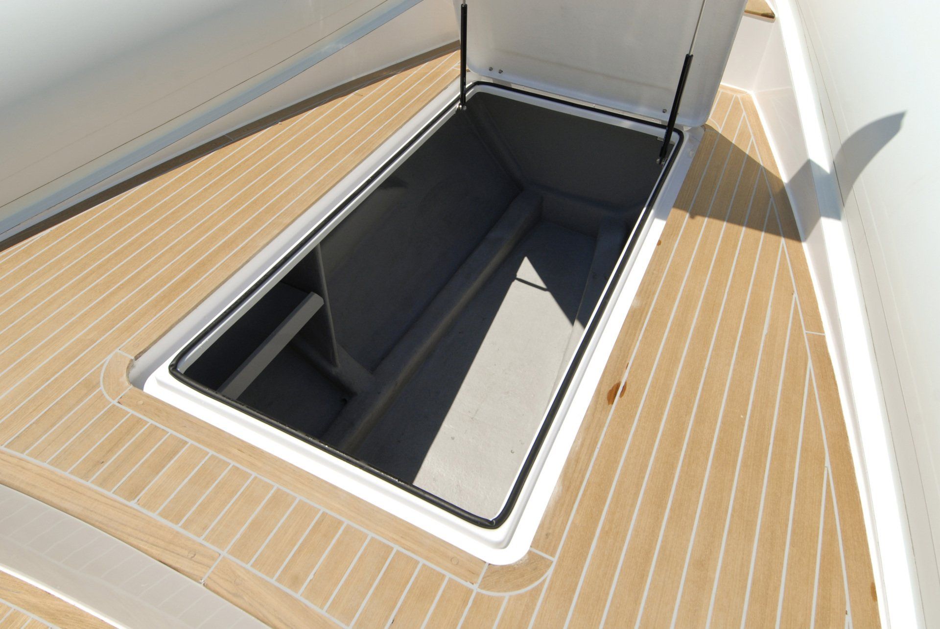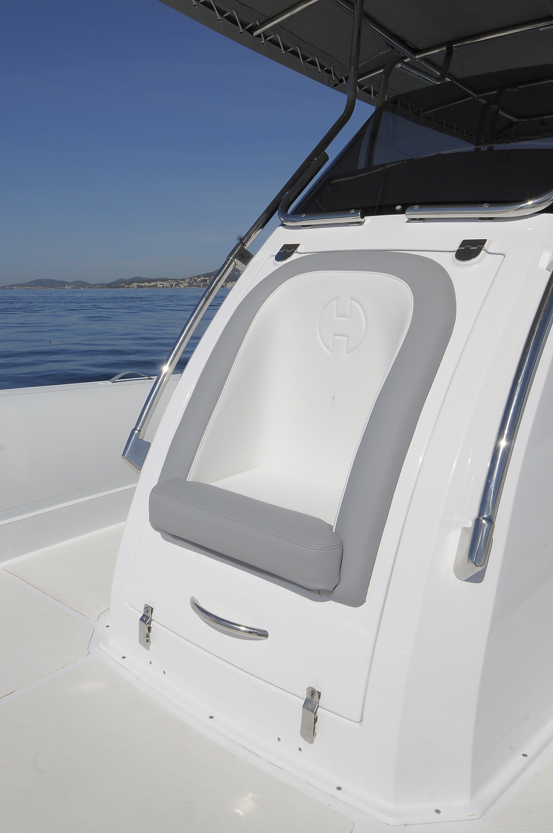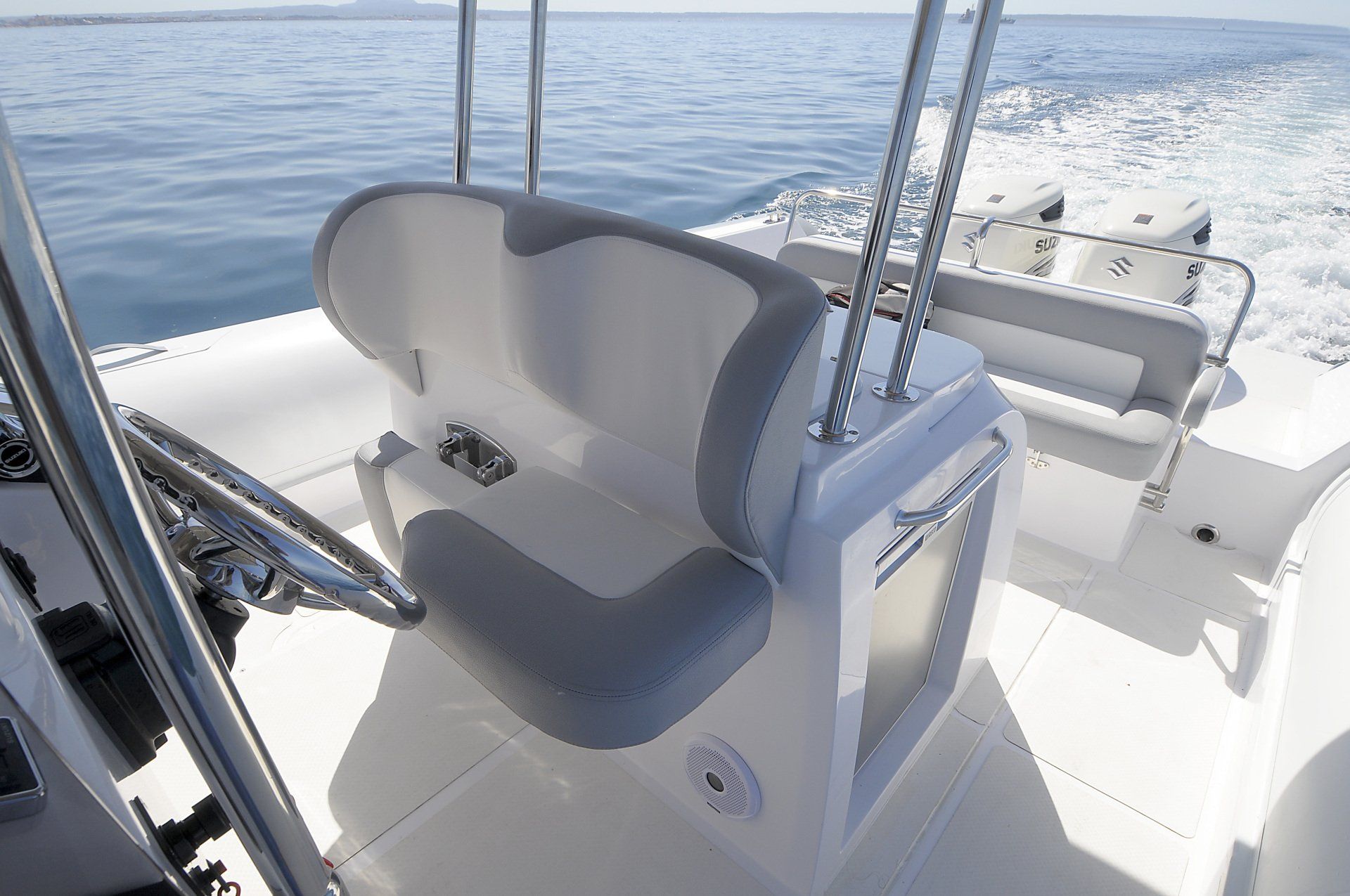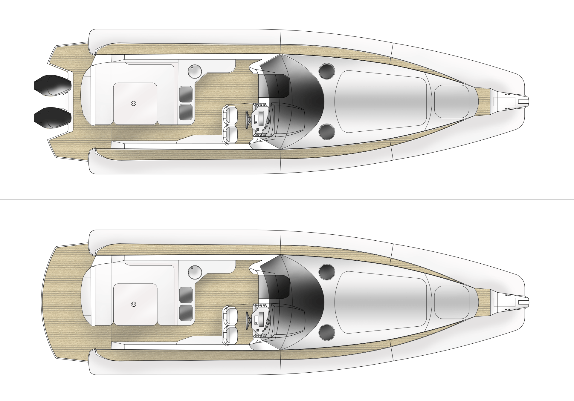 Questo rib dedica la maggior parte dello spazio disponibile alla vita di bordo all’aria aperta, come ben evidenziato dalle ampie superfici prendisole di prua e di poppa e anche dalla notevole estensione del pagliolato, che consente un transito comodo e sicuro in tutte le direzioni.