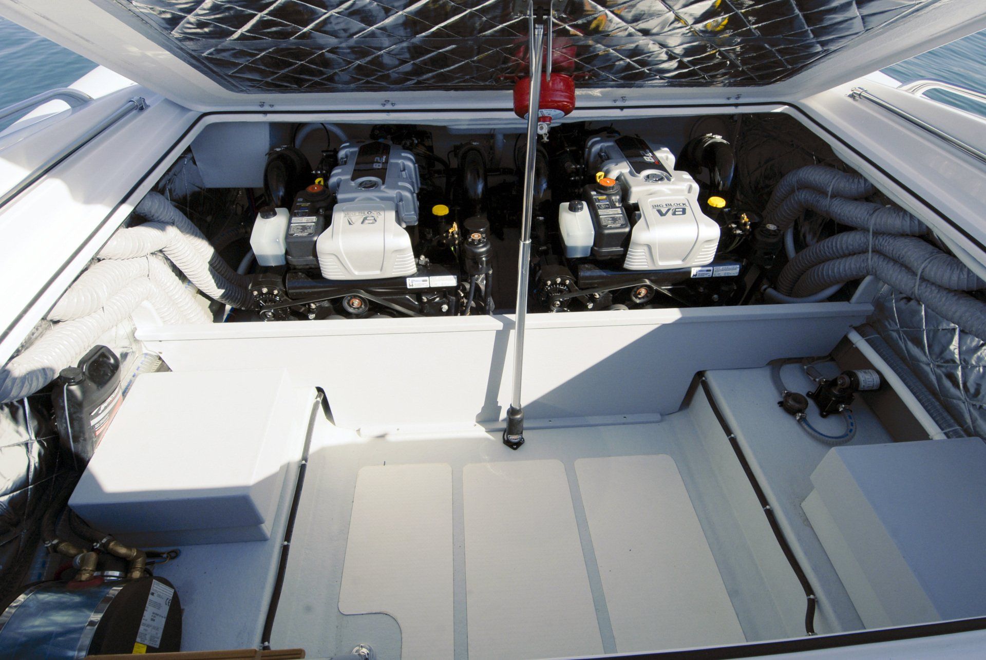 Ampio prendisole di prua, una generosa consolle studiata per garantire il massimo confort al pilota e al cui interno trova spazio una cabina con locale bagno separato, un comodo pozzetto con un'area cucina completamente configurabile e (nella sola versione e.f.b.) un secondo prendisole.